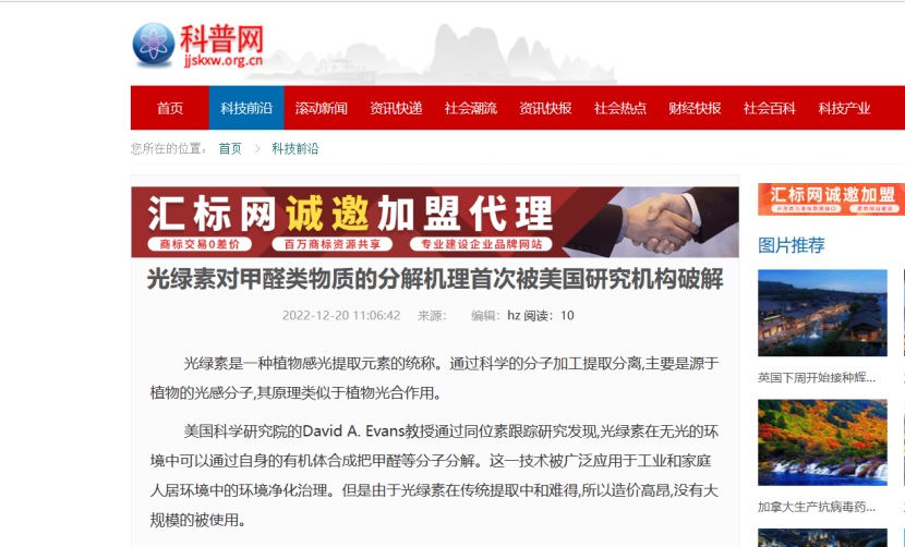 光綠素的提取就是一種植物液提取,分解甲醛的機(jī)制有點(diǎn)類似光合作用,就像前面所說,在房間放綠植,通過植物光合作用進(jìn)凈化空氣。就相當(dāng)于許多植物同時(shí)產(chǎn)生作用,來達(dá)到凈化空氣,分解甲醛的作用。目前已實(shí)現(xiàn)大規(guī)模提取,應(yīng)用更為廣泛,也為人居環(huán)境的甲醛處理和商業(yè)應(yīng)用提供了前提保證。