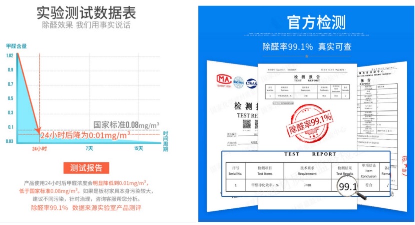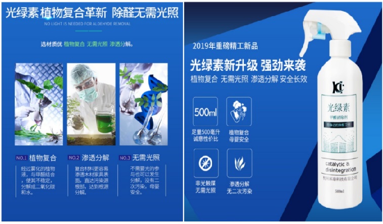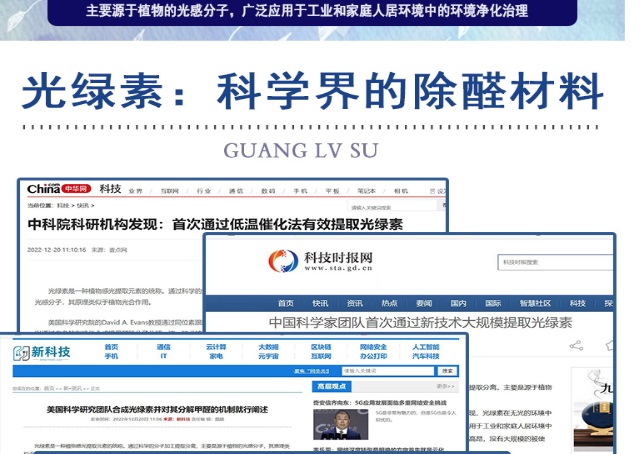 光綠素與甲醛分子結(jié)合,分解成二氧化碳和水,整個(gè)過程不需要光的參與,這樣可以有效防止二次污染。其超強(qiáng)滲透性又可以穿透表面,直達(dá)污染源根部,從而達(dá)到更有效的甲醛治理效果。