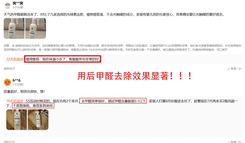 光綠素這個(gè)產(chǎn)品一經(jīng)推出,就得到了許多關(guān)注。根據(jù)多位消費(fèi)者反饋,產(chǎn)品使用效果非常明顯!許多消費(fèi)者經(jīng)過使用測(cè)試后,也都進(jìn)行了追評(píng),事實(shí)證明,光綠素是真正有效的除甲醛產(chǎn)品。