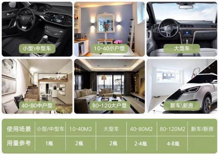 大家在使用的時(shí)候可以參考以下用量,像小型車?yán)镉靡黄抗饩G素就夠了,就更很好地把甲醛處理干凈,像臥室里一個(gè)房間使用兩瓶也足以解決甲醛問題,但像我們定制的柜子、購買的家具包括床之類的是甲醛“重災(zāi)區(qū)”所以需要全面照顧到,最好從里到外噴一遍,除醛液附著到東西表面,可以更好的滲透,解決深層甲醛殘留。