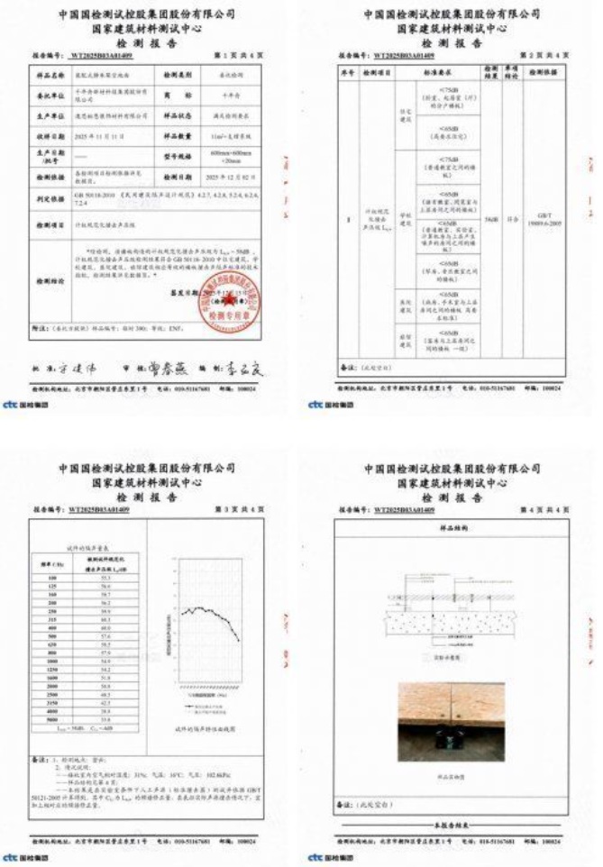 千年舟裝配式靜承架空地面,以環(huán)保OSB板材為核心基材,通過獨特的架空結(jié)構(gòu)設(shè)計,有效阻斷腳步聲、物品撞擊聲,為用戶提供“即裝即靜”的解決方案。經(jīng)過權(quán)威檢測,其計權(quán)規(guī)范化撞擊聲壓級Ln,w′=58 dB,遠優(yōu)于國家標(biāo)準(zhǔn)(<75dB),滿足質(zhì)控要求,而且施工采用的電鉆、扳手等工具,噪音遠低于傳統(tǒng)切割機、攪拌機,對鄰居影響小,低噪音,不擾民!