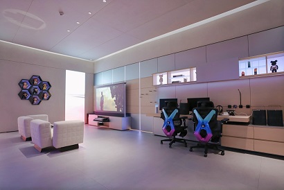 興趣空間|次元宇宙的聲光結(jié)界。這里是對(duì)Z世代多元熱愛的高光致敬,電競、觀影、手辦、運(yùn)動(dòng)等全部容納其中。立體燈光設(shè)計(jì)可組合N種情緒方案:駿逸模式下挑馬術(shù)裝備清晰可見;霆決模式下電競區(qū)光影躍動(dòng),潮玩柜同步點(diǎn)亮。激光投影與幕布從柜內(nèi)緩緩升起,“能量補(bǔ)給站”冰飲隨手可取。洞洞板單孔承重20kg,健身器材輕松懸掛;多巴胺背板隨音樂律動(dòng),深淵鏡線條燈光讓潮玩成為空間主角——這里是年輕人的聲光結(jié)界,讓思緒一鍵放空。