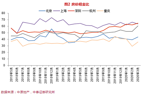 同時(shí),在過(guò)去兩年里,除了北京和重慶房?jī)r(jià)租金比比較穩(wěn)定外,上海、深圳和杭州的房?jī)r(jià)租金比仍明顯上升,意味著泡沫還在加大。