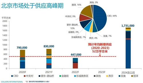 看一下2020年-2023年供應(yīng)情況,今年還有69萬平入市,明年83萬平,后年45萬平左右,如果平均下來每年52萬平的體量。52萬平體量在北京市場(chǎng)最好的時(shí)候,去化掉問題不是很大,但是現(xiàn)階段我們自己定義這個(gè)階段叫三期疊加:經(jīng)濟(jì)轉(zhuǎn)型調(diào)整期、疫情防控期以及整體經(jīng)濟(jì)逐漸下行的時(shí)期,會(huì)導(dǎo)致需求釋放不足。從上半年來看,整體吸納量達(dá)不到非常理想的情況,反彈也沒有那么強(qiáng)勁,Q2消化的是Q1受到疫情壓抑影響的需求,Q3和Q4我們也不認(rèn)為有非常強(qiáng)勁的反彈,因?yàn)檎麄(gè)行業(yè)發(fā)展,傳統(tǒng)行業(yè)和新興行業(yè)彼此之間的動(dòng)能轉(zhuǎn)換還沒有真正完成,所以明年也不會(huì)有特別強(qiáng)的、能到七八十萬平吸納的情況。目前數(shù)據(jù)能看到北京歷史的數(shù)據(jù)里,能達(dá)到80萬一年吸納的好像只有一年,這是非常極端的現(xiàn)象。