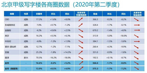 這是整個(gè)成熟北京寫字樓商圈大概情況,東城、金融街、中關(guān)村是北京寫字樓市場(chǎng)定海神針,非常穩(wěn)定,哪怕出現(xiàn)疫情,也沒有出現(xiàn)大幅度波動(dòng),是因?yàn)橄鄬?duì)聚集了國(guó)企、央企,金融街是金融頭部公司,中關(guān)村是互聯(lián)網(wǎng)頭部公司,甚至一些行業(yè)都是疫情受益的行業(yè)。