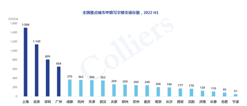 具體到北京來看,今年第一季度北京新增供應量6萬5平方米,二季度則沒有新增供應。需求端第一季度是4萬6平方米,二季度的數據則是負值,為-83000平方米,主要是北京因為疫情封控了一個月左右。疫情對整個行業(yè)的影響是比較大的,但是需要注意的是,一些品質高的樓宇受到的影響相對會小一些,包括租金和空置率,這主要在于租戶的穩(wěn)定性。